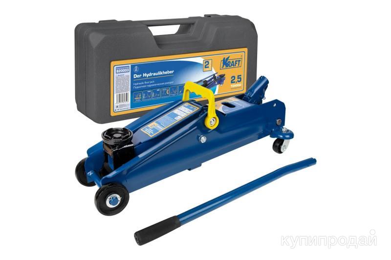 Подкатной гидравлический домкрат KRAFT 2.5 т, кейс KT 820003 предназначен для плавного поднятия автотранспорта на высоту до 385 мм.